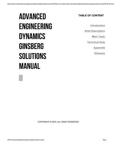Read advanced engineering dynamics ginsberg solution manual PDF